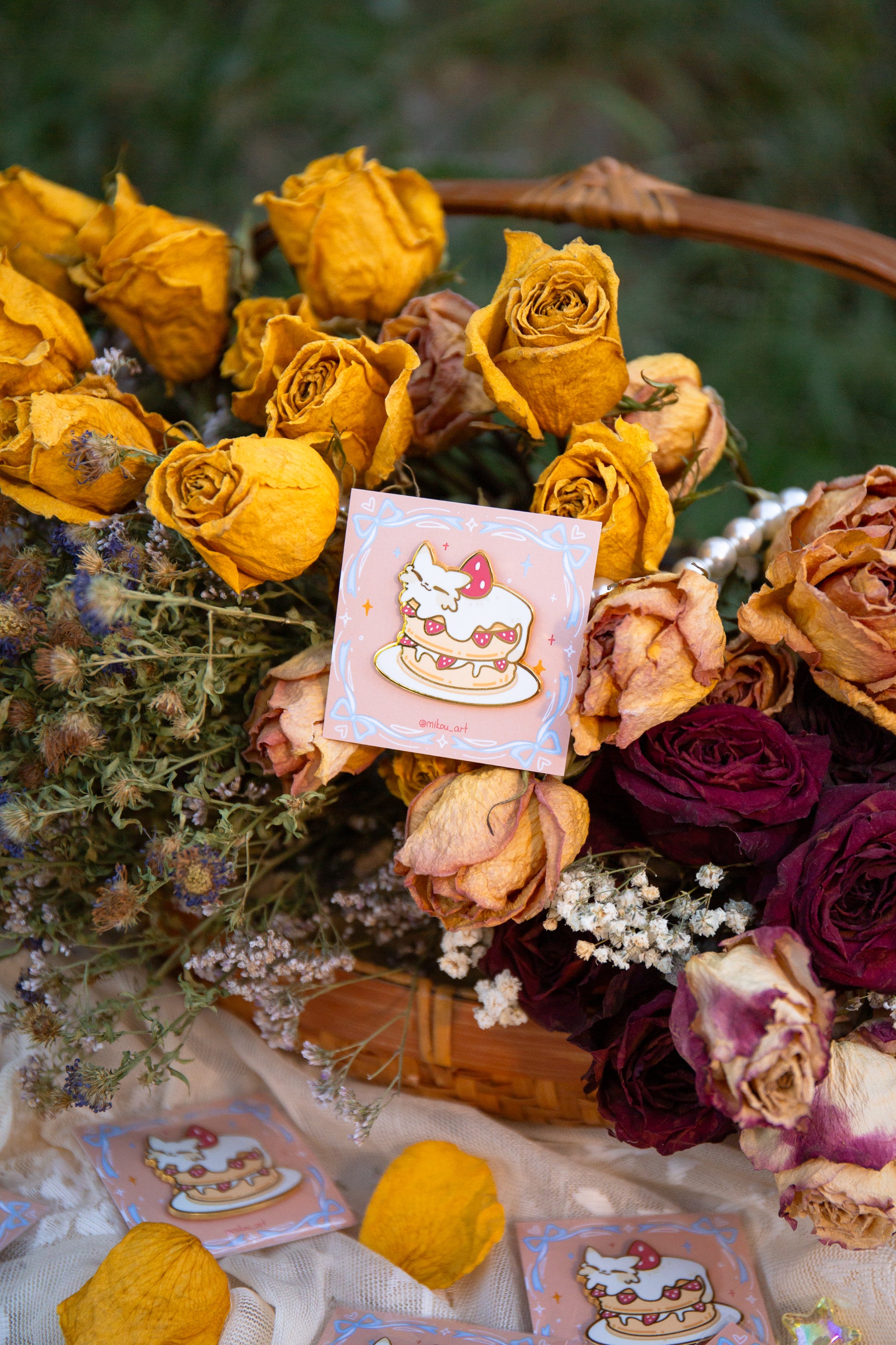Strawberry Pan Cake Cat Enamel Pin | Liquid Cat Series | Mikou Original Art