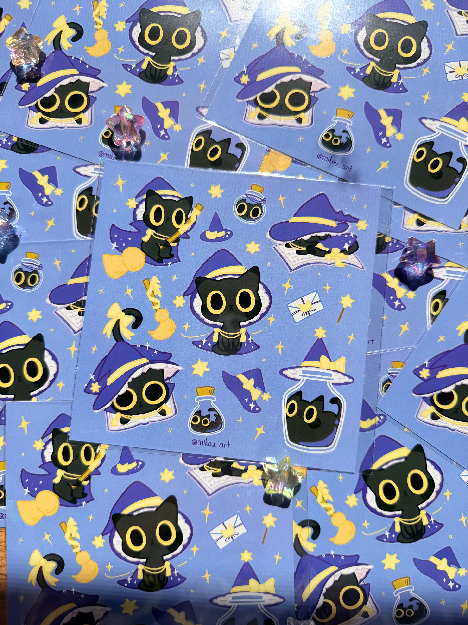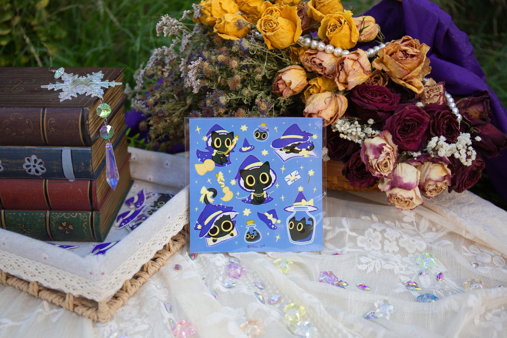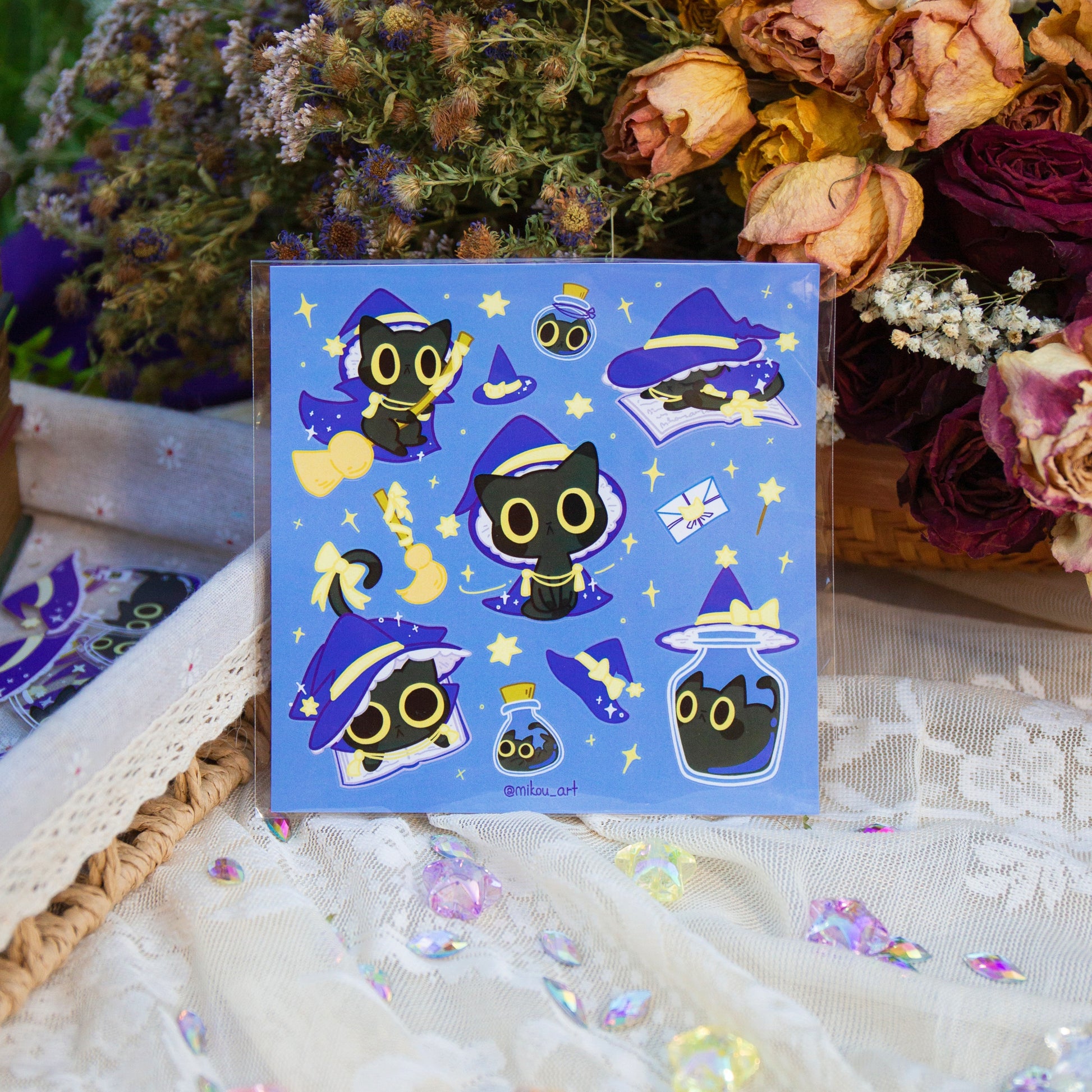 Magic Wizard Cat Sticker Sheet: Waterproof Halloween Cat Art (5.5x5.5 inch)